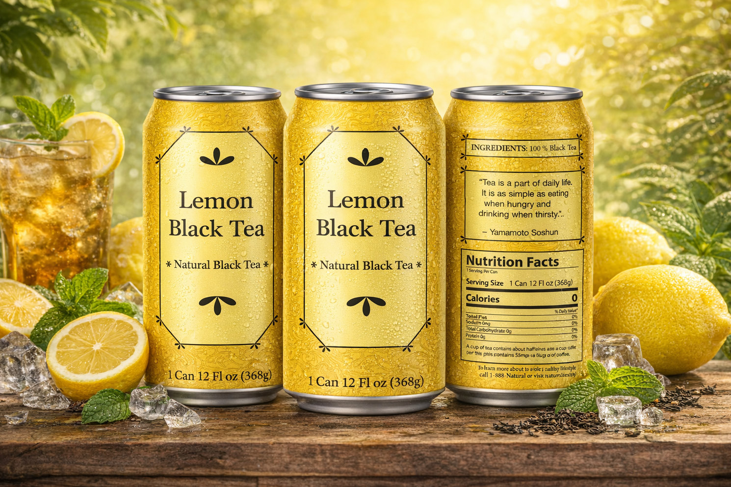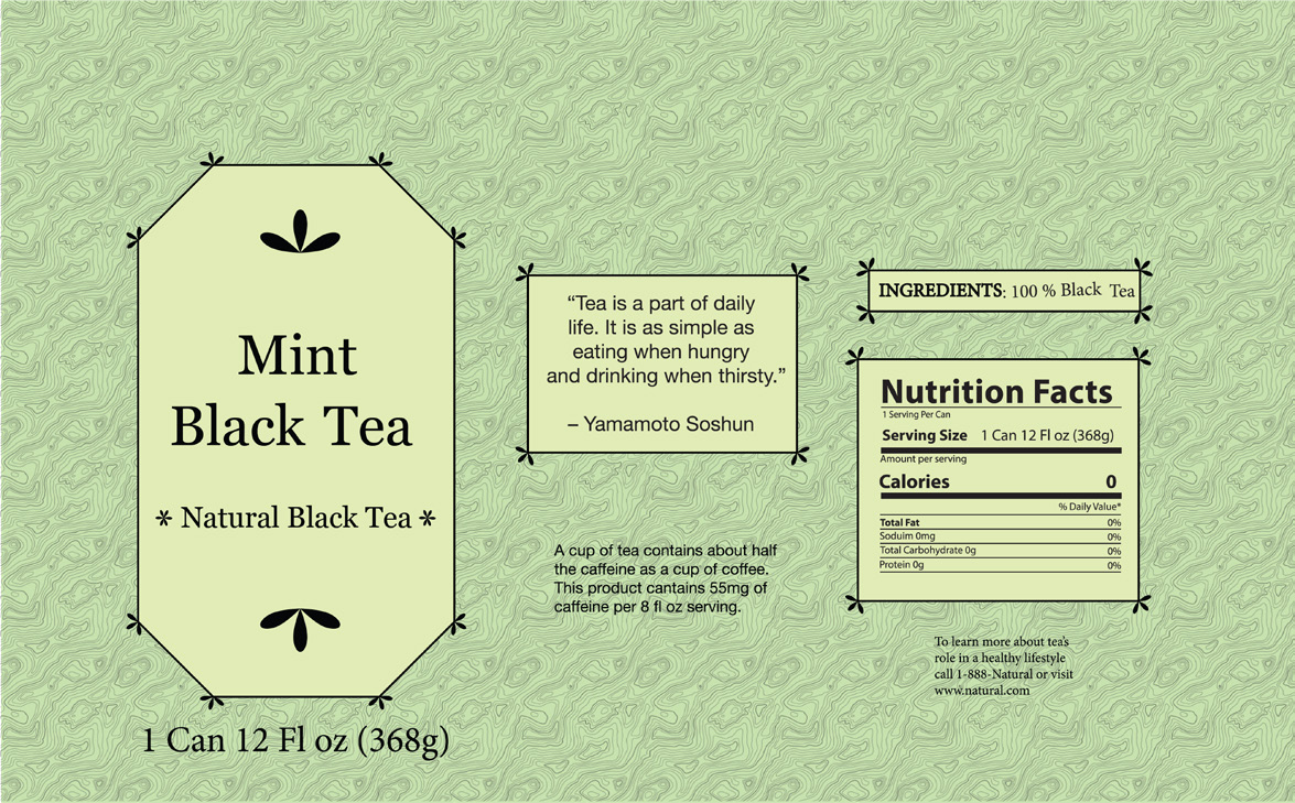 Create a cohesive and visually appealing tea beverage packaging system that communicates natural ingredients and refreshing flavors throughÂ